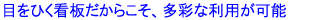 店外に設置した場合、デジタルサイネージの特長がそのまま、大きな優位性になります。